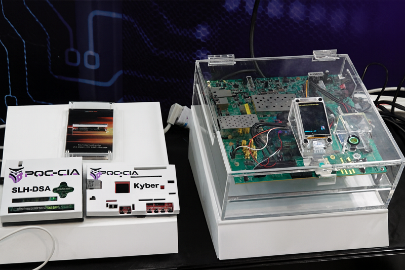 整體架構採取分層設計原則,底層為以RISC-V、ARM、X86等硬體環境,實現加解密引擎,中層為通訊與鑑別協定的模組,上層則提供API給應用系統運用,符合目前主流安全平台(如TPM、HSM)所需的架構設計。為了強化產品設計與驗證的完整性,團隊更導入FPGA作為驗證環境,透過可重構的硬體平台進行模擬與測試,確保系統在功能、安全性與效能上的可靠性。不僅提升了開發過程的靈活度,也縮短了產品從設計到實際部署的時程,讓安全晶片解決方案能更快因應後量子時代的需求。「PQC晶片與公版平台」通過TAF認可實驗室之系統壓力測試與邊界條件模擬,完成超過100種攻擊樣態測試,包括模擬量子強度下的Side-Channel Analysis(SCA)與 Fault Injection Attack(FIA)情境。