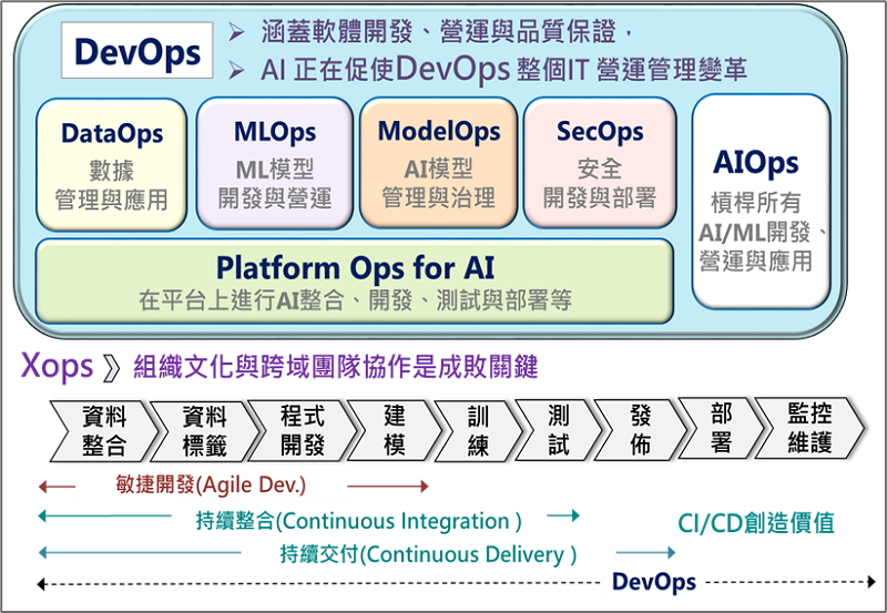 圖5 從AI生命週期出發的XOps範圍(資料來源:工研院產科國際所)